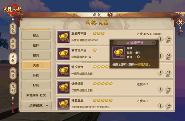 你有另一半了吗?有拜过师门收过徒弟吗?身边有一起闯荡的朋友吗?这直击灵魂的三连问曾是小编心里的一道坎(现在也没好多少),但天龙江湖里的不少少侠,那可是好友满座、情缘深厚。喏,最契合你的成就任务就在这儿,可千万别错过了。