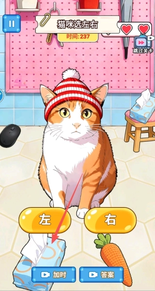 2、留意关卡里出现的物品,再结合“左右”选项所在的位置,点击对应的按钮就能完成选择。