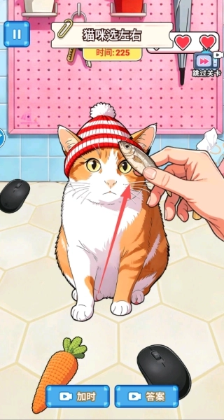 3、当猫咪做出正确选择时,将获得小鱼干奖励。