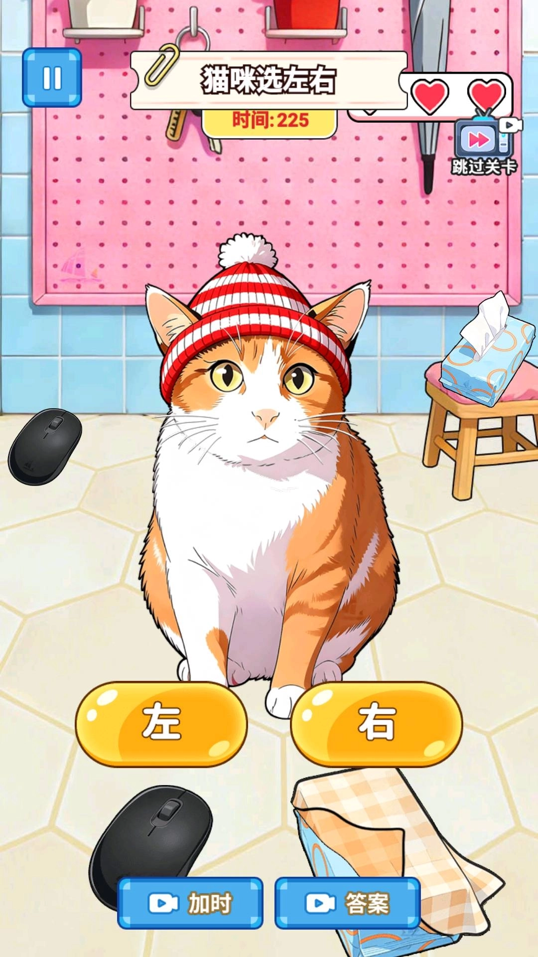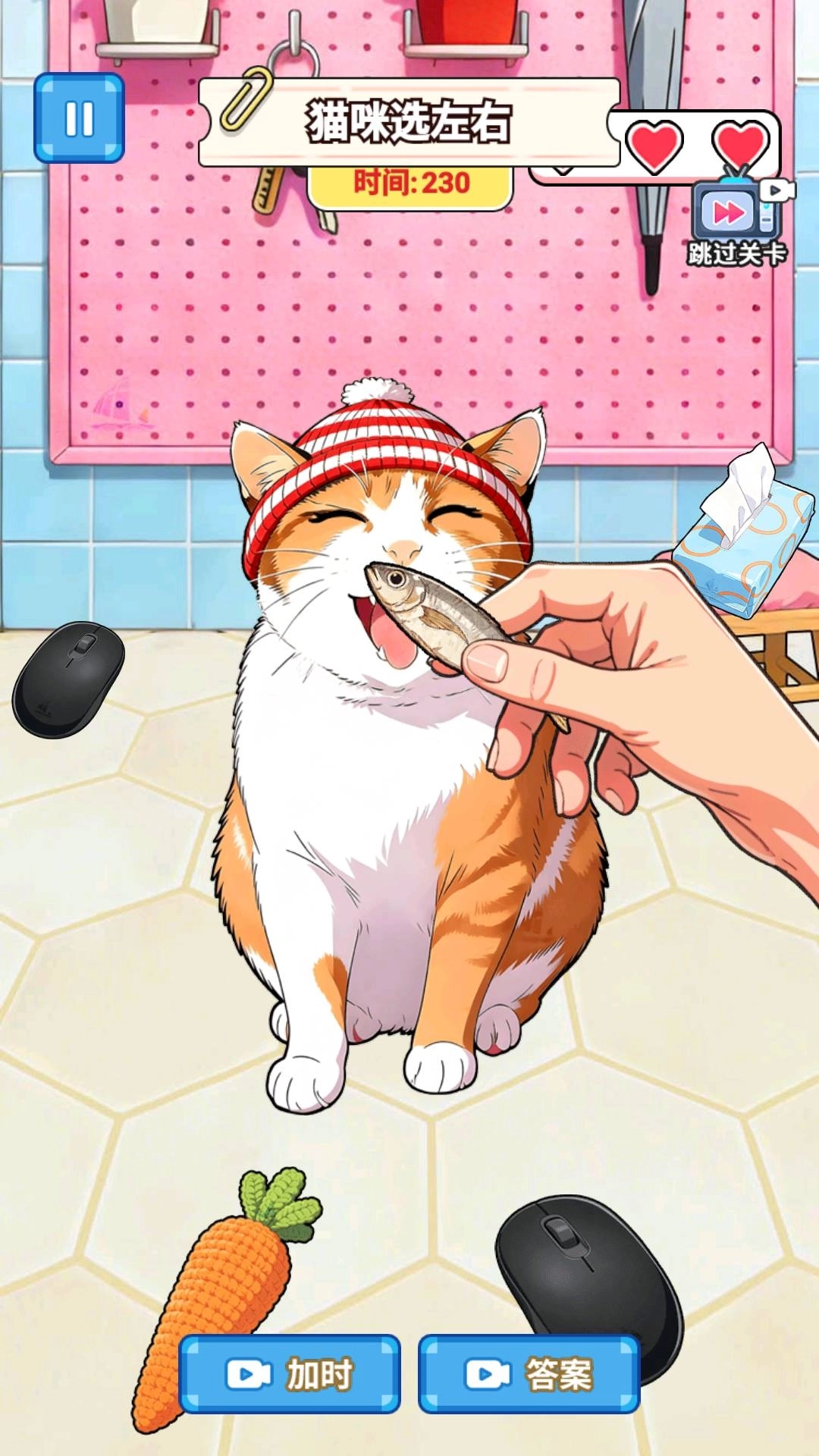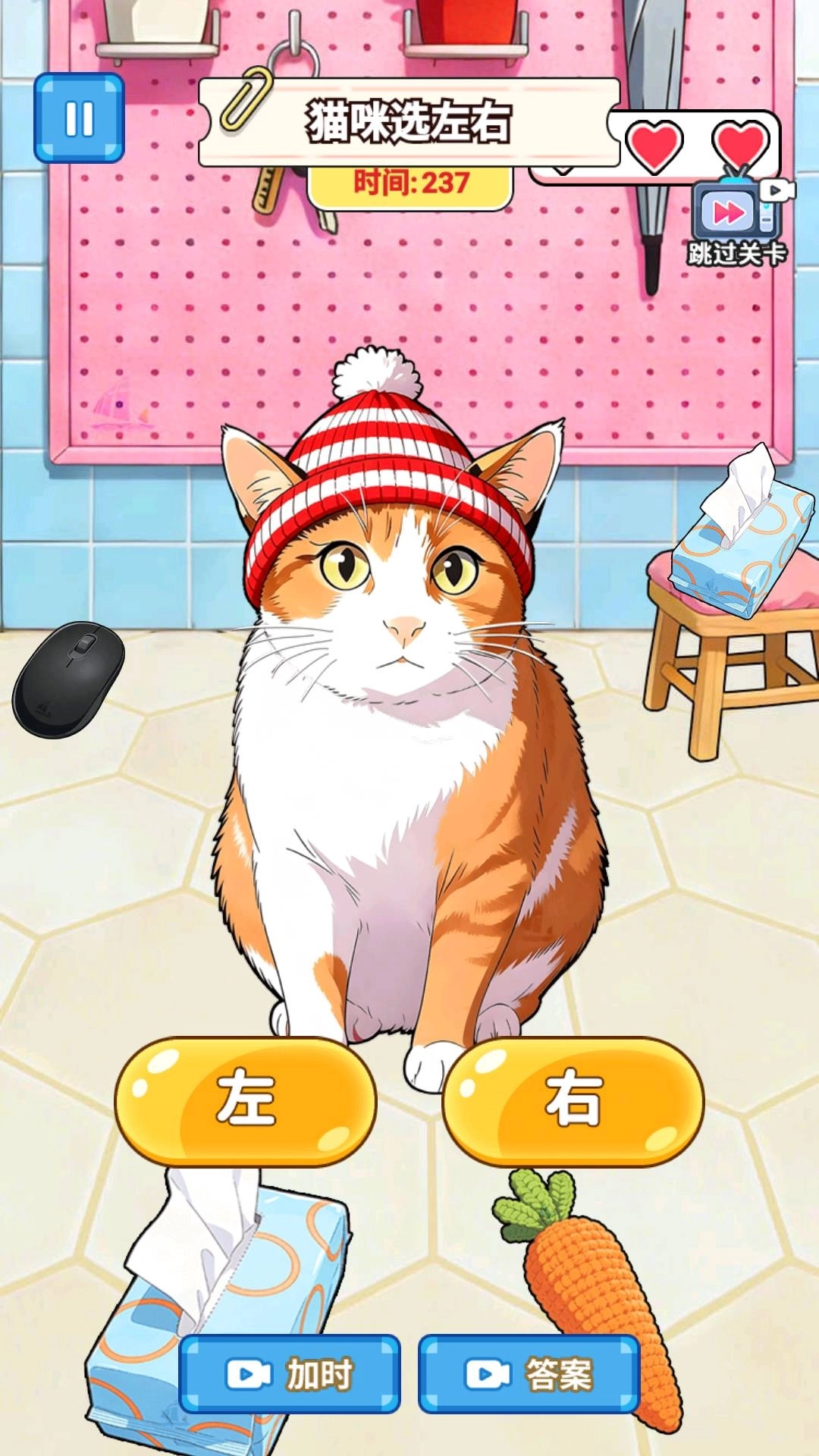 《大师疯狂挑战》的最新版本是一款趣味十足的闯关游戏,玩家将化身一只萌萌的小猫,按照主人的提示对日常物品进行左右分类,选对了就能得到小鱼干奖励。但游戏里藏着不少陷阱,那些看起来正确的选项或许带有误导性,玩家得仔细分辨才能顺利通过关卡,这让游戏过程更添趣味与挑战。