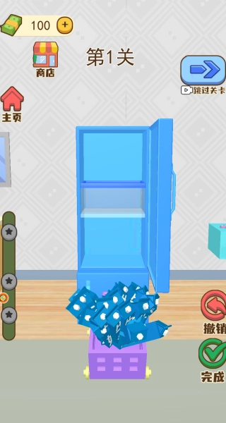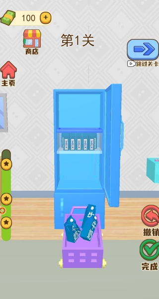 每个关卡都需要把不同类型的物品放进冰箱,不过这得靠空间想象能力来合理摆放。