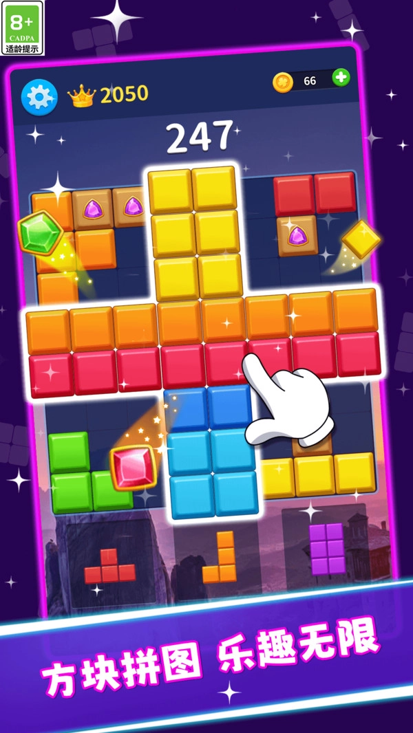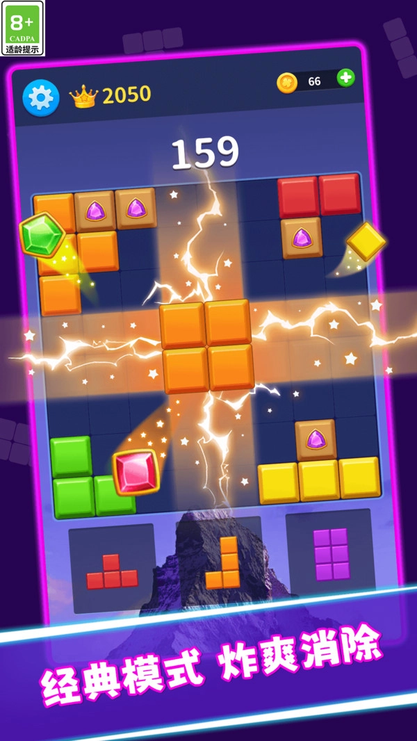 1、这是一款十分经典的方块消除类游戏,它在传统俄罗斯方块的玩法基础上,融入了不少新颖的元素。