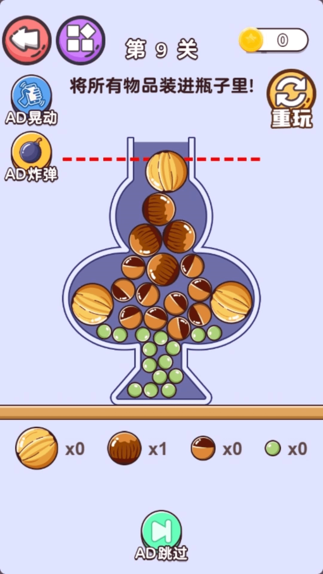 《快进瓶子来》是一款玩法与画风都十分简洁的动脑益智游戏。游戏以把所有球球都成功装进瓶子作为通关条件,为玩家们打造了一个搞怪又魔性的趣味游戏天地。这里不仅有简单有趣、充满疯狂刺激的恶搞整蛊元素,还能让所有玩家通过这款游戏身临其境般地体验到其中的乐趣!