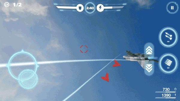 4、玩家要操控各类风格酷炫的战斗机,在空中展开激动人心的射击对决,过程轻松休闲又充满乐趣。