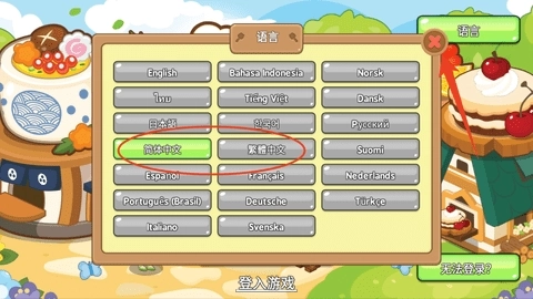 进入游戏后要是发现语言并非中文,可点击右上角的“language”按钮。