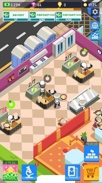 2、对餐厅进行升级,解锁更多区域空间,开启丰富多样的商业玩法,尽情体验充满乐趣的商业生活。