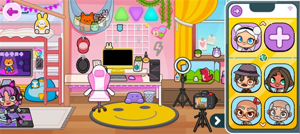 2、进入游戏后,玩家能够自由地与角色进行互动,还可以和卡通角色一起玩游戏。