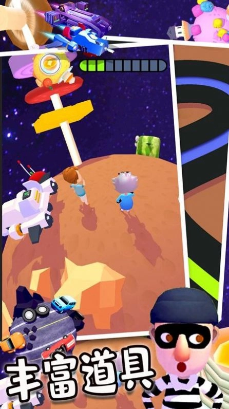 用活泼可爱的卡通画风重现宇宙里的各类景象,和外星人展开对抗并将它们打败。