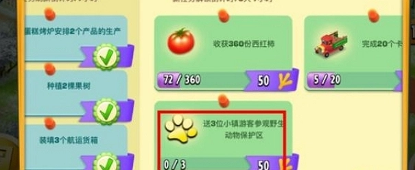 1、首先,玩家在游戏里通过【农场通行币】系统接取的常规任务,要求是完成三次带游客参观野生动物的任务。