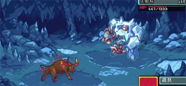 在对战冰系BOSS的过程中,当它的血量快要耗尽时会释放泰坦之力,这个技能会让我方所有精灵都进入冰冻状态(推测同时也能清除BOSS自身的异常状态)。不过它的攻击伤害不高,整体难度不大,通关还是比较轻松的。