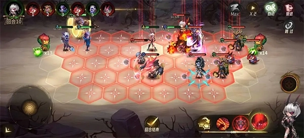 3、结束当前回合(若英雄已无可释放的技能或不存在敌方目标,直接点击回合结束按钮,即可进入下一个英雄的回合)