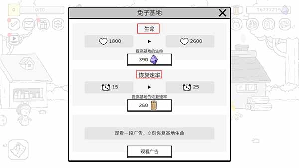 3、选择升级基地血量;