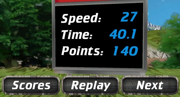 5、顺利冲过终点线即可完成当前关卡,你可以查看自己的速度数据与通关用时;若对成绩不满意,可点击“replay”按钮重新挑战;要是觉得结果不错,点击“next”就能进入下一关继续挑战啦。