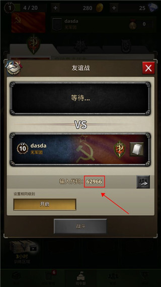 2、在此处能够输入好友分享给你的入场码,接着点击“入场”即可。另外,也能够点击【开友谊战】自行创建房间。