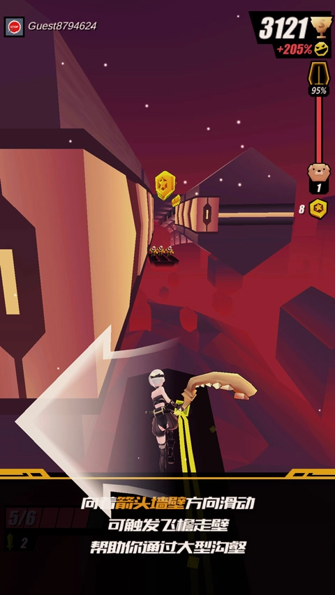 哎呀,前面没路了呢,这时候可以左右滑动,在有箭头的墙上行走,哈哈,是不是有种飞檐走壁的感觉呀?