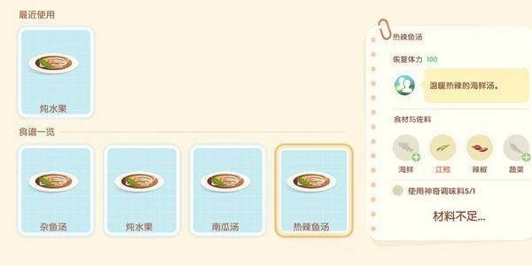 5、玩家每次只能开启一个烹饪进程,而且部分食物需要烹饪等级达到特定要求才能制作,不然就会出现食材过度消耗的情况。