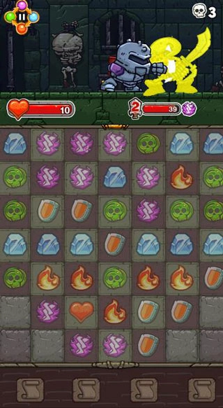 骑士故事是一款巧妙地结合了解压的消消乐元素和战斗冒险的益智闯关游戏。在这款游戏中,玩家将扮演一名即将踏上冒险的勇敢骑士,你的目标就是击败魔王城中的魔王,守护王国的和平。游戏采用消消乐的玩法作为骑士的攻击方式,带来别样的游戏乐趣。