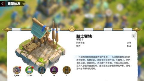 骑士营地是骑士与驮马的训练场所,骑士擅长近战作战,驮马则在野外资源采集中能发挥良好作用。