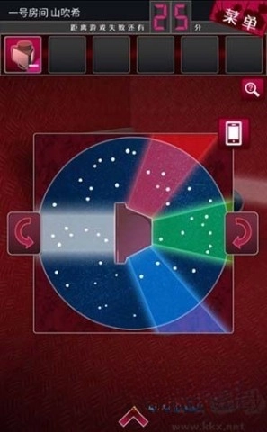 首先点击遥控器取下电池,接着调查桌子,获取手机和三棱镜。然后查看角落的小台子,把电池装上。