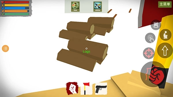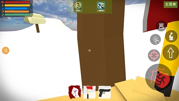 1、玩家能够借助地图里的木头、土和水,搭建出一个生存基地。