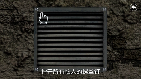 3、第一个密室很简单,我们需要找到螺丝刀将通风口打开,螺丝刀位置不固定,但只出现在柜子及桌子抽屉中,将屏幕中白点对准位置即可进行操作