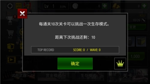-发挥生存模式,在这种模式下,你必须从所有可用的武器射击,直到时间耗尽。