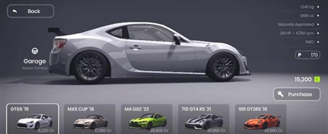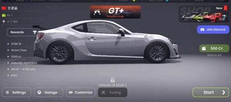 5. 在主界面轻点“Garage”,就能进入车库。在这里,玩家能够花费金币来解锁各类不同的车辆。