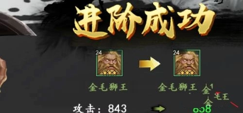 6、我们便进阶成功,侠客金毛狮王的属性也随之进阶至1阶;