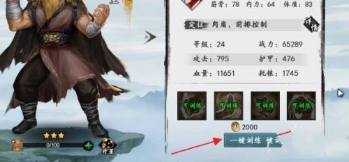 3、我们接着前往侠客金毛狮王的所在之处,找到侠客金毛狮王修炼区域下方的一键训练按钮并点击。