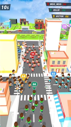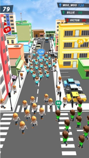 在这座人潮涌动的城市里,一场以群体竞争为主线的休闲游戏正悄然展开。你要带领自己的队伍穿梭于机关密布的城市场景,躲开危机四伏的区域,最终战胜镇守关卡的强大对手。游戏画面简约而不失精致,操作方式简单易懂,让你在妙趣横生的对抗过程中,感受策略规划与即时反应相互交织的独特体验。