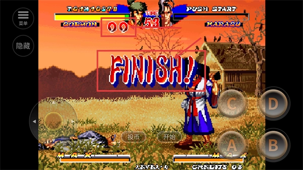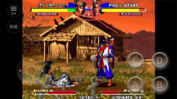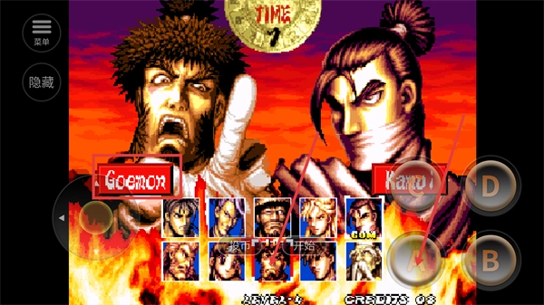 1、在角色选择界面选中【Goemon】,点击投币按钮,即可进入对战模式开启格斗之旅。