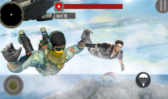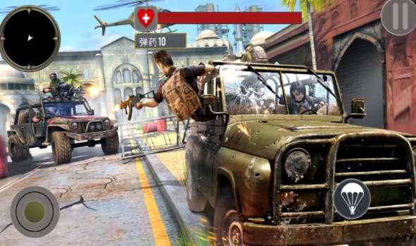 2、玩家通过跳伞选择角色加入战车,拿起武器和枪支向敌人射击。