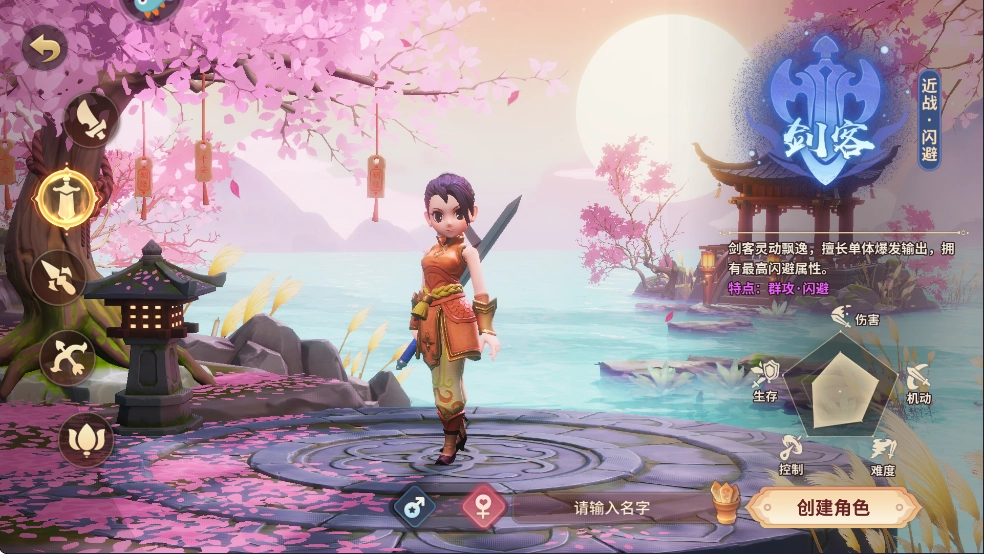 剑客职业与刀客有所差异,其更侧重于机动性与控制连招。技能招式展现出灵动且飘逸的特点,在成功打出控制效果后,能即刻发动爆发性伤害。然而,该职业的角色身板相对脆弱,无法直接承受过多伤害,因而更契合那些热衷于捕捉时机、施展爆发连招的侠士。