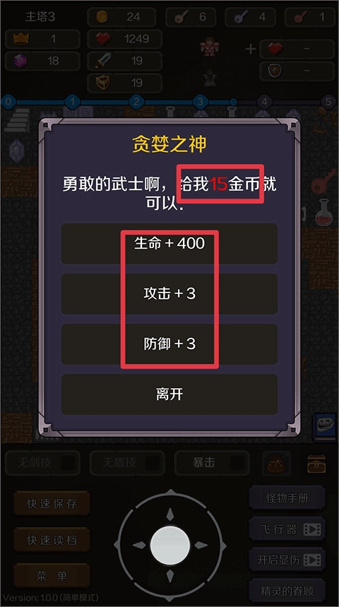 5、在贪婪之神玩法里,玩家能够消耗金币来获取生命值、攻击力、防御力等属性的提升。
