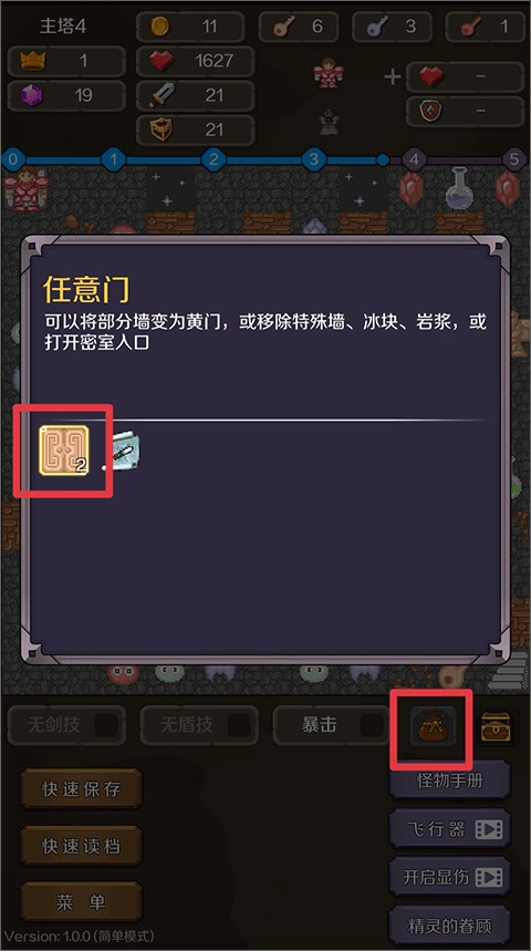 4、比如任意门,得到这个道具后,能够把部分墙体转化为黄门,或是清除特殊墙、冰块、岩浆,亦或是开启密室的入口。