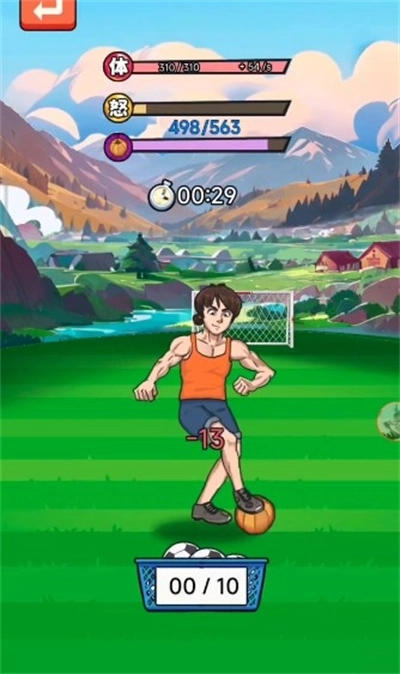 1、简单直观的操作方式,操作主角,通过练习提升足球技巧,让玩家通过疯狂点击屏幕,来练习足球技巧。