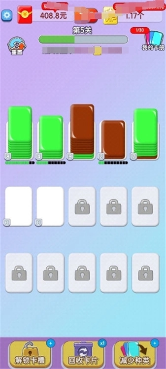 欢乐卡片是一款采用卡片堆叠玩法的红包小游戏,拥有超解压的休闲内容,操作十分简单,只需把不同卡片拖至合成区域进行组合就行。通过的关卡越多,能解锁的红包数量就越多,赚取的零花钱也会更丰厚哦!