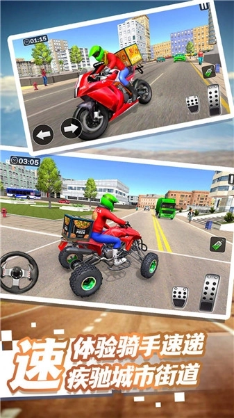 1、游戏画面更具真实感,玩家将化身外卖员角色,体验丰富多样的游戏内容,朝着成为一名优秀外卖员的目标迈进。