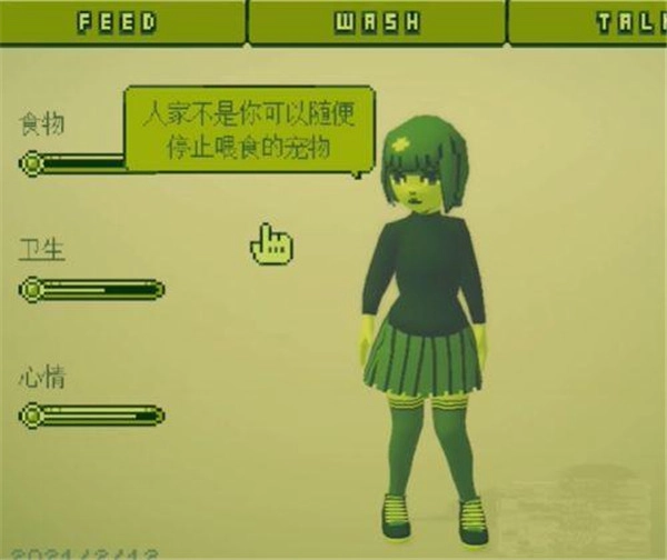 2. 包含三个核心要素:食物、卫生与心情,你的每一个选择都会对女孩产生影响,在与她互动的过程中,还会触发不少有趣的故事。