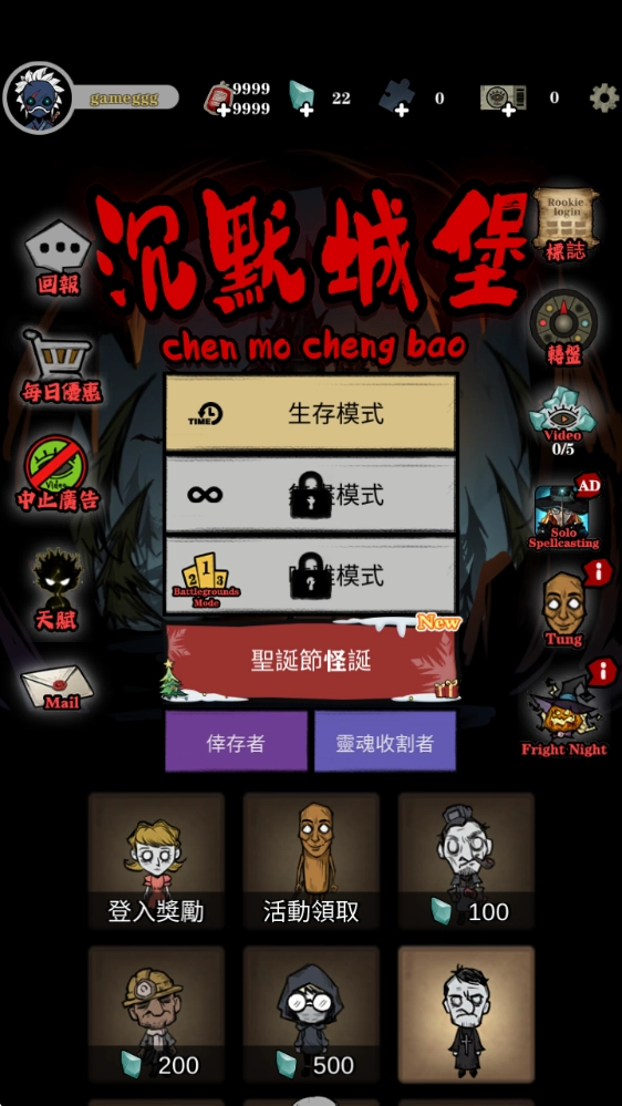 2、除了基本的生存模式外,还有更加刺激的无限模式,能够让你无止尽的进行挑战,坚持一个又一个夜晚,击败更多的收割者。
