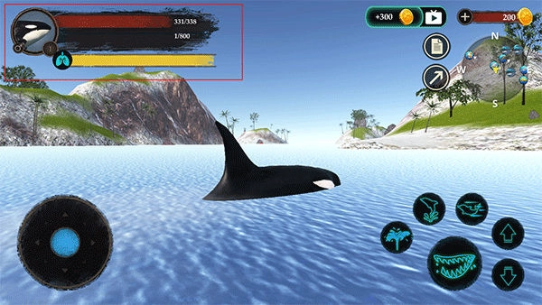 2、可通过摇杆操控虎鲸移动,点击对应按键即可完成各类操作;