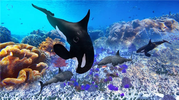 2、游戏在画面画质上做了精心设计,使整体视觉效果更显逼真,游玩时能让人产生身临其境的感受,尤其是虎鲸的游动动画,不仅逼真而且流畅自然。