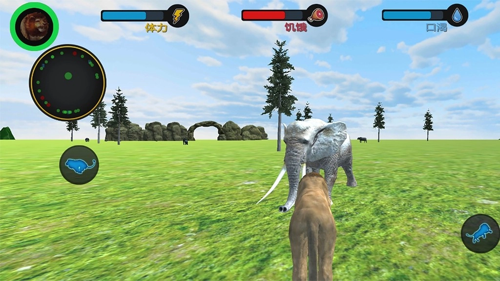 1、发现猎物后,连续轻点屏幕两次,狮子便会加速冲刺;待靠近猎物时,长按攻击按钮,即可施展扑咬技能,成功捕获猎物以获取食物。