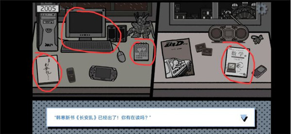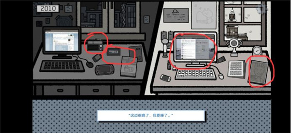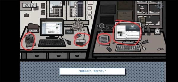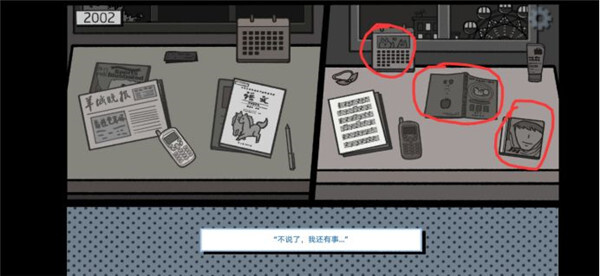 8、接着点击桌面上的小物件推进剧情,类似“不说了,还有事…”这样的话,一次都别点。