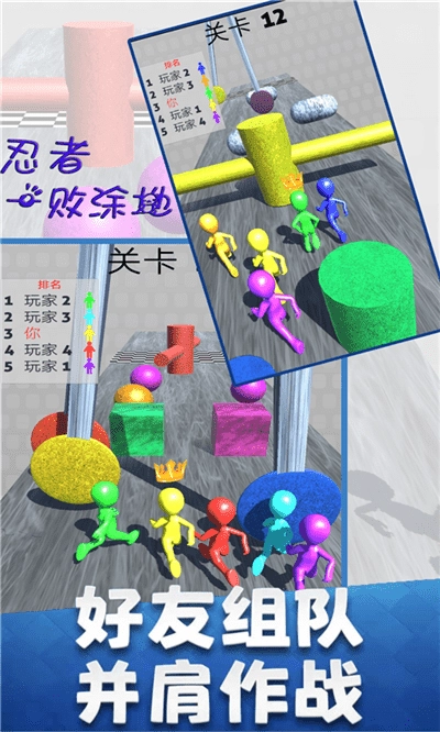 《忍者一败涂地》是一款多人同台竞技闯关游戏,包含组队接力赛与单人赛两种模式,20余个不同关卡地图等待玩家挑战。你既可以一马当先快速通关,也能恶搞对手实现后来居上,玩法丰富多样、趣味十足。游戏中需灵活走位,警惕对手的碰撞与拖拽,最终用时最短的选手将赢得胜利。快来体验吧!