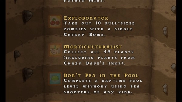 3、游戏新增了图鉴系统,玩家可在其中查阅植物与僵尸的各项属性,还能努力达成各类成就挑战。