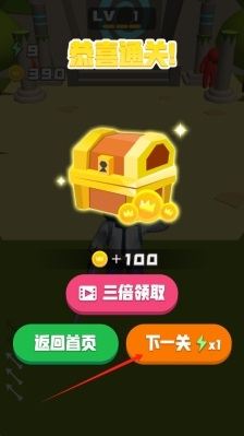 3、完成当前关卡后,点击“下一关”,接着挑战难度更高的关卡,以此提升射击技巧,点击即可进入下一关卡。