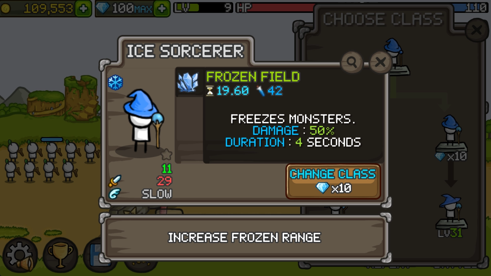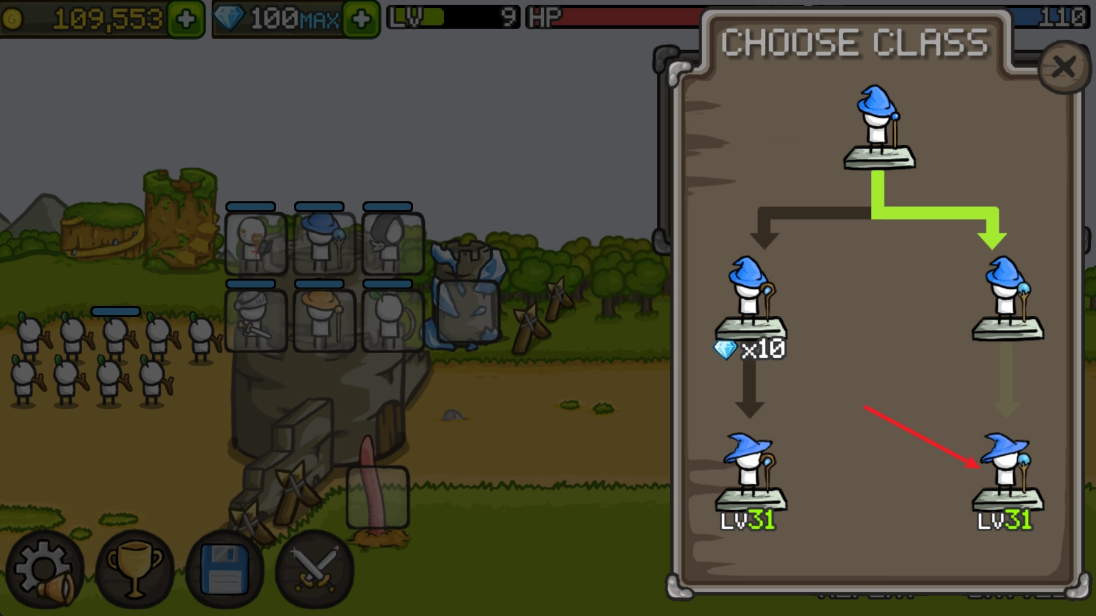 在主界面选择英雄,等英雄等级提升到11级后,点击右下角的“change class”按钮。