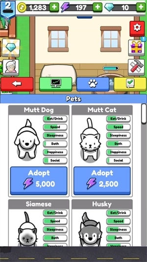6、持续扩建你的房屋以容纳更多宠物,不断解锁各类设施,尽情体验最具趣味的养成之旅。