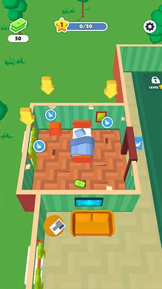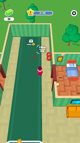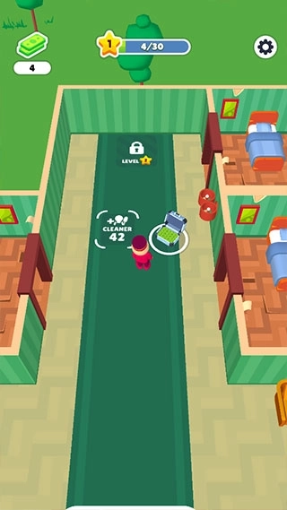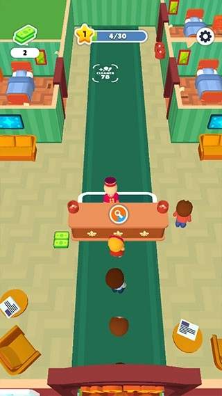 3、为客人安排好房间后,待他们入住结束,需要及时对房间进行清理打扫,这样才能继续接待下一批客人。只需操控小人移动到待清理的区域附近,系统便会自动启动清理流程。